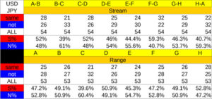 傾向を探りたいと言いながらも、L49%S51%というようなどっちとも言えない数字がバンバン出てきますが、これはこれで立派な”傾向”なんです。どっちとも言えないなら『ポジションを持たない』という選択が浮上してきますのでっ///